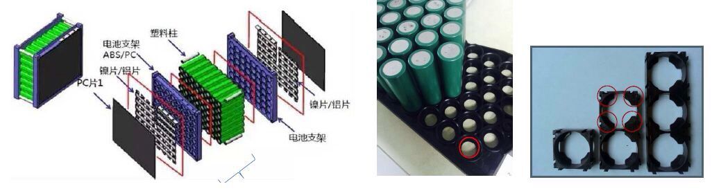 一、圓柱形電池與底部支架的粘接固定: